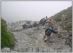 | |  | | | |  | Bardzo dużo turystów na szczycie. To jest Przełęcz Szpiglasowa a zejście w kierunku Doliny 5 Stawów, stromym zejściem w którym pomagały łańcuchy, tak jak na fotce po lewej. | | | Dolina Pięciu Stawów - chmury i słońce które nie daje rady się przez nie przebić. | | | <<<wstecz następne >>> |